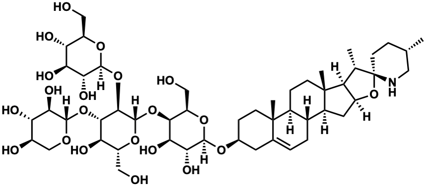InChI=1S/C50H81NO21/c1-20-7-12-50(51-15-20)21(2)32-28(72-50)14-26-24-6-5-22-13-23(8-10-48(22,3)25(24)9-11-49(26,32)4)65-45-40(63)37(60)41(31(18-54)68-45)69-47-43(71-46-39(62)36(59)34(57)29(16-52)66-46)42(35(58)30(17-53)67-47)70-44-38(61)33(56)27(55)19-64-44/h5,20-21,23-47,51-63H,6-19H2,1-4H3/t20-,21-,23-,24+,25-,26-,27+,28-,29+,30+,31+,32-,33-,34+,35+,36-,37+,38+,39+,40+,41-,42-,43+,44-,45+,46-,47-,48-,49-,50-/m0/s1 |