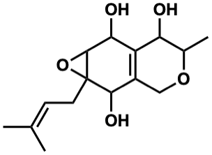 CC(C)=CCC12OC1C(O)C1=C(COC(C)C1O)C2O |