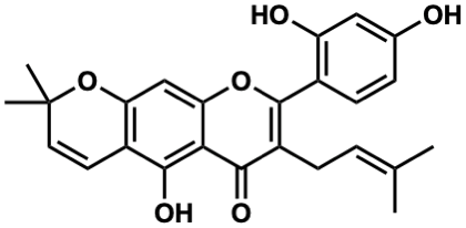 CC(C)=CCc1c(-c2ccc(O)cc2O)oc2cc3c(c(O)c2c1=O)C=CC(C)(C)O3 |