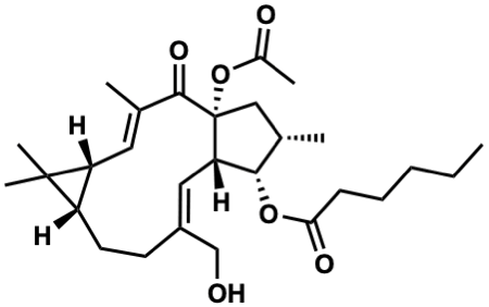 CCCCCC(=O)O[C@H]1[C@@H](C)C[C@]2(OC(C)=O)C(=O)/C(C)=C/[C@@H]3[C@H](CC/C(CO)=C/[C@@H]12)C3(C)C |