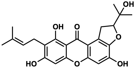 CC(C)=CCc1c(O)cc2oc3cc(O)c4c(c3c(=O)c2c1O)CC(C(C)(C)O)O4 |