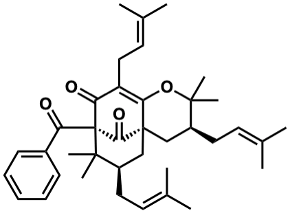 CC(C)=CCC1=C2OC(C)(C)[C@@H](CC=C(C)C)C[C@@]23C[C@@H](CC=C(C)C)C(C)(C)[C@@](C(=O)c2ccccc2)(C1=O)C3=O |