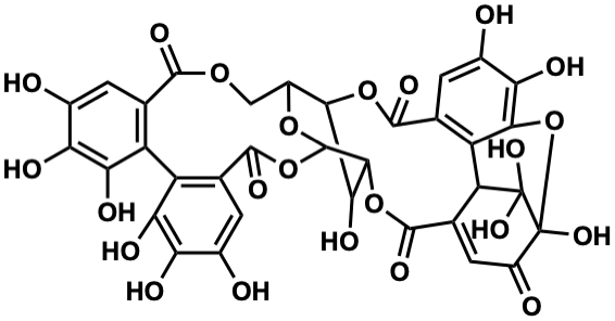 InChI=1S/C34H24O23/c35-10-1-6-15(22(42)19(10)39)16-7(2-11(36)20(40)23(16)43)30(47)56-32-27-24(44)25(13(53-32)5-52-28(6)45)54-29(46)8-3-12(37)21(41)26-17(8)18-9(31(48)55-27)4-14(38)34(51,57-26)33(18,49)50/h1-4,13,18,24-25,27,32,35-37,39-44,49-51H,5H2/t13-,18?,24?,25+,27-,32-,34?/m1/s1 |
