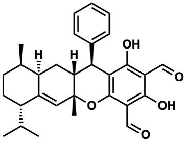 CC(C)[C@@H]1CC[C@@H](C)[C@H]2C[C@@H]3[C@@H](c4ccccc4)c4c(O)c(C=O)c(O)c(C=O)c4O[C@]3(C)C=C12 |
