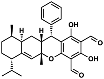 CC(C)[C@@H]1CC[C@@H](C)[C@H]2C[C@@H]3[C@H](c4ccccc4)c4c(O)c(C=O)c(O)c(C=O)c4O[C@]3(C)C=C12 |