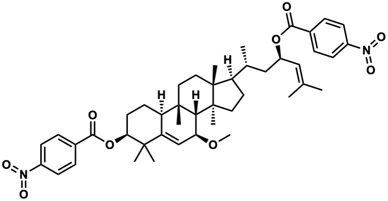 InChI=1S/C45H58N2O9/c1-27(2)24-33(55-40(48)29-10-14-31(15-11-29)46(50)51)25-28(3)34-20-21-45(8)39-37(54-9)26-36-35(43(39,6)22-23-44(34,45)7)18-19-38(42(36,4)5)56-41(49)30-12-16-32(17-13-30)47(52)53/h10-17,24,26,28,33-35,37-39H,18-23,25H2,1-9H3/t28-,33+,34-,35-,37+,38+,39-,43+,44-,45+/m1/s1 |