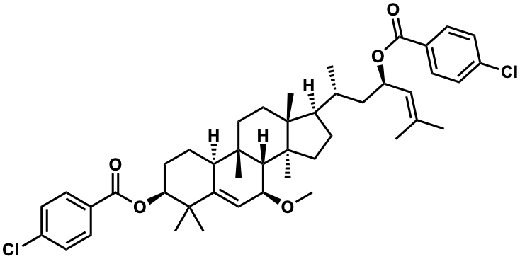 InChI=1S/C45H58Cl2O5/c1-27(2)24-33(51-40(48)29-10-14-31(46)15-11-29)25-28(3)34-20-21-45(8)39-37(50-9)26-36-35(43(39,6)22-23-44(34,45)7)18-19-38(42(36,4)5)52-41(49)30-12-16-32(47)17-13-30/h10-17,24,26,28,33-35,37-39H,18-23,25H2,1-9H3/t28-,33+,34-,35-,37+,38+,39-,43+,44-,45+/m1/s1 |