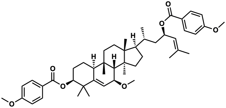InChI=1S/C47H64O7/c1-29(2)26-35(53-42(48)31-12-16-33(50-9)17-13-31)27-30(3)36-22-23-47(8)41-39(52-11)28-38-37(45(41,6)24-25-46(36,47)7)20-21-40(44(38,4)5)54-43(49)32-14-18-34(51-10)19-15-32/h12-19,26,28,30,35-37,39-41H,20-25,27H2,1-11H3/t30-,35+,36-,37-,39+,40+,41-,45+,46-,47+/m1/s1 |