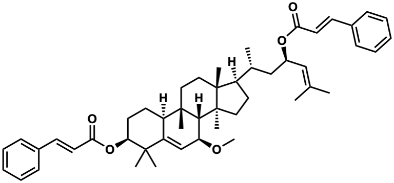 InChI=1S/C49H64O5/c1-33(2)30-37(53-43(50)24-20-35-16-12-10-13-17-35)31-34(3)38-26-27-49(8)45-41(52-9)32-40-39(47(45,6)28-29-48(38,49)7)22-23-42(46(40,4)5)54-44(51)25-21-36-18-14-11-15-19-36/h10-21,24-25,30,32,34,37-39,41-42,45H,22-23,26-29,31H2,1-9H3/b24-20+,25-21+/t34-,37+,38-,39-,41+,42+,45-,47+,48-,49+/m1/s1 |