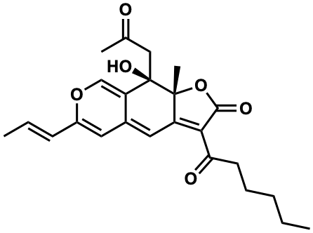InChI=1S/C24H28O6/c1-5-7-8-10-20(26)21-18-12-16-11-17(9-6-2)29-14-19(16)24(28,13-15(3)25)23(18,4)30-22(21)27/h6,9,11-12,14,28H,5,7-8,10,13H2,1-4H3/b9-6+/t23-,24-/m1/s1 |