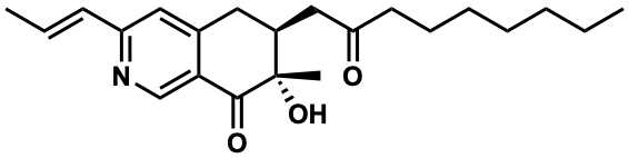 InChI=1S/C22H31NO3/c1-4-6-7-8-9-11-19(24)14-17-12-16-13-18(10-5-2)23-15-20(16)21(25)22(17,3)26/h5,10,13,15,17,26H,4,6-9,11-12,14H2,1-3H3/b10-5+/t17-,22-/m0/s1 |