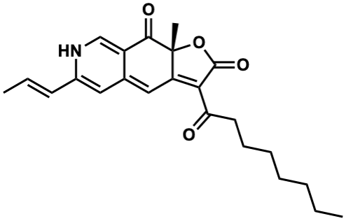 InChI=1S/C23H27NO4/c1-4-6-7-8-9-11-19(25)20-18-13-15-12-16(10-5-2)24-14-17(15)21(26)23(18,3)28-22(20)27/h5,10,12-14,24H,4,6-9,11H2,1-3H3/b10-5+/t23-/m1/s1 |