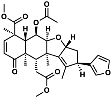 InChI=1S/C30H36O9/c1-15-18(17-9-11-37-14-17)12-19-23(15)30(5)20(13-22(33)35-6)29(4)21(32)8-10-28(3,27(34)36-7)25(29)24(26(30)39-19)38-16(2)31/h8-11,14,18-20,24-26H,12-13H2,1-7H3/t18-,19-,20-,24-,25+,26-,28-,29+,30-/m1/s1 |