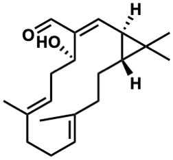 C/C1=CC[C@@H](O)/C(C=O)=C[C@@H]2[C@@H](CC/C(C)=C/CC1)C2(C)C |