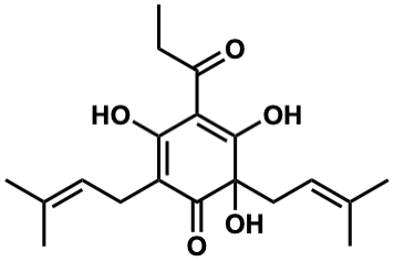 CCC(=O)C1=C(O)C(O)(CC=C(C)C)C(=O)C(CC=C(C)C)=C1O |