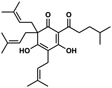 CC(C)=CCC1=C(O)C(CC=C(C)C)(CC=C(C)C)C(=O)C(C(=O)CCC(C)C)=C1O |