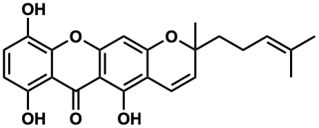 CC(C)=CCCC1(C)C=Cc2c(cc3oc4c(O)ccc(O)c4c(=O)c3c2O)O1 |