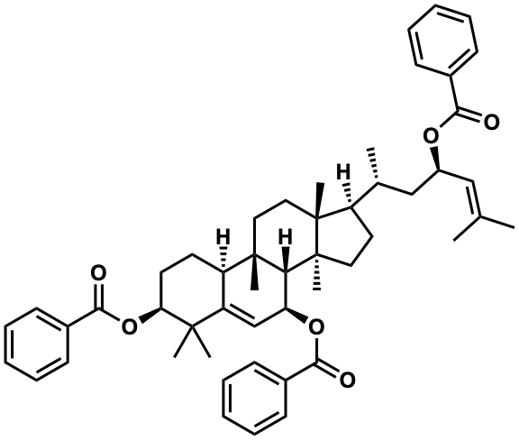 InChI=1S/C51H62O6/c1-33(2)30-38(55-45(52)35-18-12-9-13-19-35)31-34(3)39-26-27-51(8)44-42(56-46(53)36-20-14-10-15-21-36)32-41-40(49(44,6)28-29-50(39,51)7)24-25-43(48(41,4)5)57-47(54)37-22-16-11-17-23-37/h9-23,30,32,34,38-40,42-44H,24-29,31H2,1-8H3/t34-,38+,39-,40-,42+,43+,44-,49+,50-,51+/m1/s1 |