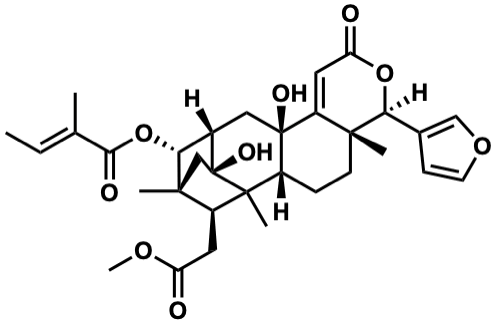 InChI=1S/C32H40O9/c1-7-17(2)27(35)41-26-19-14-31(36)20(30(5)21(12-23(33)38-6)29(26,4)16-32(19,30)37)8-10-28(3)22(31)13-24(34)40-25(28)18-9-11-39-15-18/h7,9,11,13,15,19-21,25-26,36-37H,8,10,12,14,16H2,1-6H3/b17-7+/t19-,20+,21-,25-,26+,28+,29+,30?,31+,32-/m0/s1 |