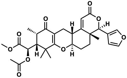 InChI=1S/C29H34O9/c1-14-22(24(27(33)34-6)36-15(2)30)28(3,4)26-18(23(14)32)11-17-19-12-21(31)38-25(16-8-10-35-13-16)29(19,5)9-7-20(17)37-26/h8,10,12-14,17,20,22,24-25H,7,9,11H2,1-6H3/t14-,17+,20+,22-,24+,25-,29+/m0/s1 |