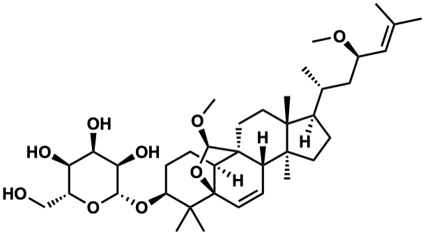 InChI=1S/C38H62O9/c1-21(2)18-23(43-8)19-22(3)24-12-14-36(7)26-13-15-38-27(37(26,33(44-9)47-38)17-16-35(24,36)6)10-11-28(34(38,4)5)46-32-31(42)30(41)29(40)25(20-39)45-32/h13,15,18,22-33,39-42H,10-12,14,16-17,19-20H2,1-9H3/t22-,23+,24-,25-,26+,27+,28+,29-,30-,31-,32+,33-,35-,36+,37+,38-/m1/s1 |