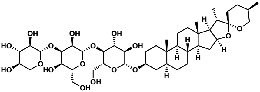 InChI=1S/C44H72O17/c1-19-7-12-44(55-17-19)20(2)30-27(61-44)14-25-23-6-5-21-13-22(8-10-42(21,3)24(23)9-11-43(25,30)4)56-40-35(52)33(50)37(29(16-46)58-40)59-41-36(53)38(32(49)28(15-45)57-41)60-39-34(51)31(48)26(47)18-54-39/h19-41,45-53H,5-18H2,1-4H3/t19-,20+,21+,22+,23-,24+,25+,26-,27+,28-,29-,30+,31+,32-,33-,34-,35-,36-,37-,38-,39+,40-,41+,42+,43+,44-/m1/s1 |