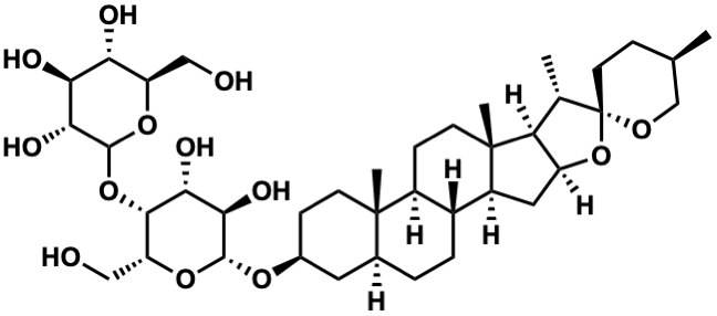 InChI=1S/C39H64O13/c1-18-7-12-39(47-17-18)19(2)28-25(52-39)14-24-22-6-5-20-13-21(8-10-37(20,3)23(22)9-11-38(24,28)4)48-35-33(46)31(44)34(27(16-41)50-35)51-36-32(45)30(43)29(42)26(15-40)49-36/h18-36,40-46H,5-17H2,1-4H3/t18-,19+,20+,21+,22-,23+,24+,25+,26-,27-,28+,29-,30+,31-,32-,33-,34+,35-,36?,37+,38+,39-/m1/s1 |