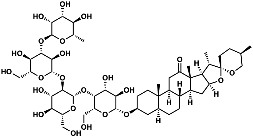 InChI=1S/C51H82O23/c1-19-8-11-51(65-18-19)20(2)32-27(74-51)13-26-24-7-6-22-12-23(9-10-49(22,4)25(24)14-31(55)50(26,32)5)67-46-40(63)38(61)42(30(17-54)70-46)71-48-44(37(60)34(57)28(15-52)69-48)73-47-41(64)43(35(58)29(16-53)68-47)72-45-39(62)36(59)33(56)21(3)66-45/h19-30,32-48,52-54,56-64H,6-18H2,1-5H3/t19-,20+,21+,22+,23+,24-,25+,26+,27+,28-,29-,30-,32+,33+,34-,35-,36-,37+,38-,39-,40-,41-,42+,43+,44-,45+,46-,47+,48+,49+,50-,51-/m1/s1 |