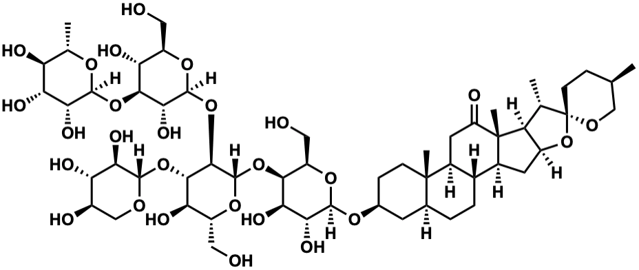 InChI=1S/C56H90O27/c1-20-8-11-56(73-18-20)21(2)34-29(83-56)13-27-25-7-6-23-12-24(9-10-54(23,4)26(25)14-33(61)55(27,34)5)75-51-43(70)40(67)45(32(17-59)78-51)79-53-48(47(38(65)31(16-58)77-53)81-49-41(68)36(63)28(60)19-72-49)82-52-44(71)46(37(64)30(15-57)76-52)80-50-42(69)39(66)35(62)22(3)74-50/h20-32,34-53,57-60,62-71H,6-19H2,1-5H3/t20-,21+,22+,23+,24+,25-,26+,27+,28-,29+,30-,31-,32-,34+,35+,36+,37-,38-,39-,40-,41-,42-,43-,44-,45+,46+,47+,48-,49+,50+,51-,52+,53+,54+,55-,56-/m1/s1 |