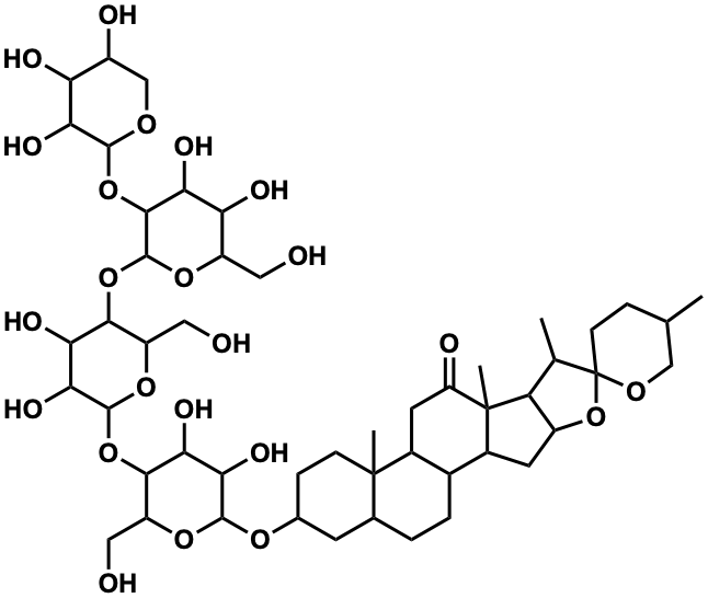 InChI=1S/C50H80O23/c1-19-7-10-50(65-17-19)20(2)32-27(73-50)12-25-23-6-5-21-11-22(8-9-48(21,3)24(23)13-31(55)49(25,32)4)66-45-39(62)36(59)41(29(15-52)68-45)70-46-40(63)37(60)42(30(16-53)69-46)71-47-43(35(58)34(57)28(14-51)67-47)72-44-38(61)33(56)26(54)18-64-44/h19-30,32-47,51-54,56-63H,5-18H2,1-4H3 |