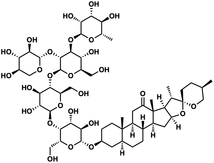InChI=1S/C56H90O27/c1-20-8-11-56(73-18-20)21(2)34-29(83-56)13-27-25-7-6-23-12-24(9-10-54(23,4)26(25)14-33(61)55(27,34)5)75-51-43(70)39(66)45(31(16-58)77-51)79-52-44(71)40(67)46(32(17-59)78-52)80-53-48(82-49-41(68)36(63)28(60)19-72-49)47(37(64)30(15-57)76-53)81-50-42(69)38(65)35(62)22(3)74-50/h20-32,34-53,57-60,62-71H,6-19H2,1-5H3/t20-,21+,22+,23+,24+,25-,26+,27+,28-,29+,30-,31-,32-,34+,35+,36+,37-,38-,39-,40-,41-,42-,43-,44-,45+,46-,47+,48-,49+,50+,51-,52+,53+,54+,55-,56-/m1/s1 |