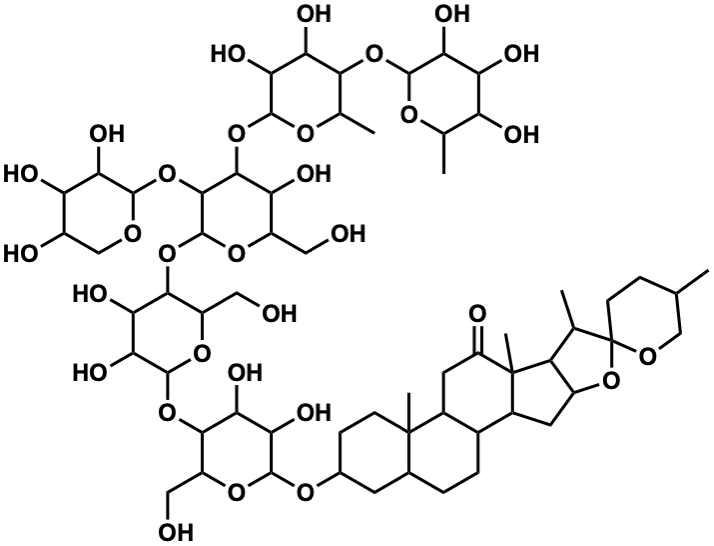 InChI=1S/C62H100O31/c1-21-9-12-62(81-19-21)22(2)36-31(93-62)14-29-27-8-7-25-13-26(10-11-60(25,5)28(27)15-35(67)61(29,36)6)84-57-47(78)42(73)50(33(17-64)86-57)89-58-48(79)43(74)51(34(18-65)87-58)90-59-53(92-54-44(75)38(69)30(66)20-80-54)52(39(70)32(16-63)85-59)91-56-46(77)41(72)49(24(4)83-56)88-55-45(76)40(71)37(68)23(3)82-55/h21-34,36-59,63-66,68-79H,7-20H2,1-6H3 |