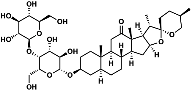 InChI=1S/C39H62O14/c1-17-7-10-39(48-16-17)18(2)28-24(53-39)12-23-21-6-5-19-11-20(8-9-37(19,3)22(21)13-27(42)38(23,28)4)49-35-33(47)31(45)34(26(15-41)51-35)52-36-32(46)30(44)29(43)25(14-40)50-36/h17-26,28-36,40-41,43-47H,5-16H2,1-4H3/t17-,18+,19+,20+,21-,22+,23+,24+,25-,26-,28+,29-,30+,31-,32-,33-,34+,35-,36+,37+,38-,39-/m1/s1 |