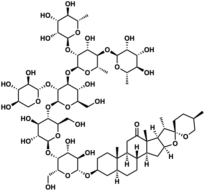 InChI=1S/C68H110O35/c1-22-10-13-68(89-20-22)23(2)38-33(103-68)15-31-29-9-8-27-14-28(11-12-66(27,6)30(29)16-37(73)67(31,38)7)93-62-50(85)45(80)54(35(18-70)95-62)98-63-51(86)46(81)55(36(19-71)96-63)99-65-58(102-59-47(82)41(76)32(72)21-88-59)56(42(77)34(17-69)94-65)100-64-57(101-61-49(84)44(79)40(75)25(4)91-61)52(87)53(26(5)92-64)97-60-48(83)43(78)39(74)24(3)90-60/h22-36,38-65,69-72,74-87H,8-21H2,1-7H3/t22-,23+,24+,25+,26+,27+,28+,29-,30+,31+,32-,33+,34-,35-,36-,38+,39+,40+,41+,42-,43-,44-,45-,46-,47-,48-,49-,50-,51-,52-,53+,54+,55-,56+,57-,58-,59+,60+,61+,62-,63+,64+,65+,66+,67-,68-/m1/s1 |