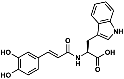 O=C(/C=C/c1ccc(O)c(O)c1)N[C@@H](Cc1c[nH]c2ccccc12)C(=O)O |