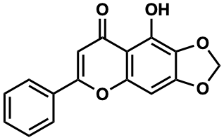 O=c1cc(-c2ccccc2)oc2cc3c(c(O)c12)OCO3 |