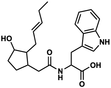 CC/C=C/CC1C(O)CCC1CC(=O)NC(Cc1c[nH]c2ccccc12)C(=O)O |
