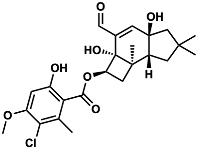COc1cc(O)c(C(=O)O[C@@H]2C[C@]3(C)[C@H]4CC(C)(C)C[C@@]4(O)C=C(C=O)[C@]23O)c(C)c1Cl |