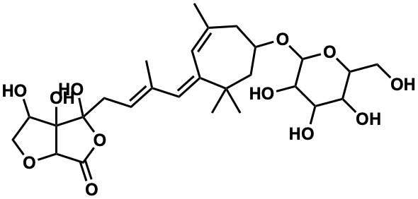 CC1=C/C(=CC(C)=CCC2(O)OC(=O)C3OCC(O)C32O)C(C)(C)CC(OC2OC(CO)C(O)C(O)C2O)C1 |