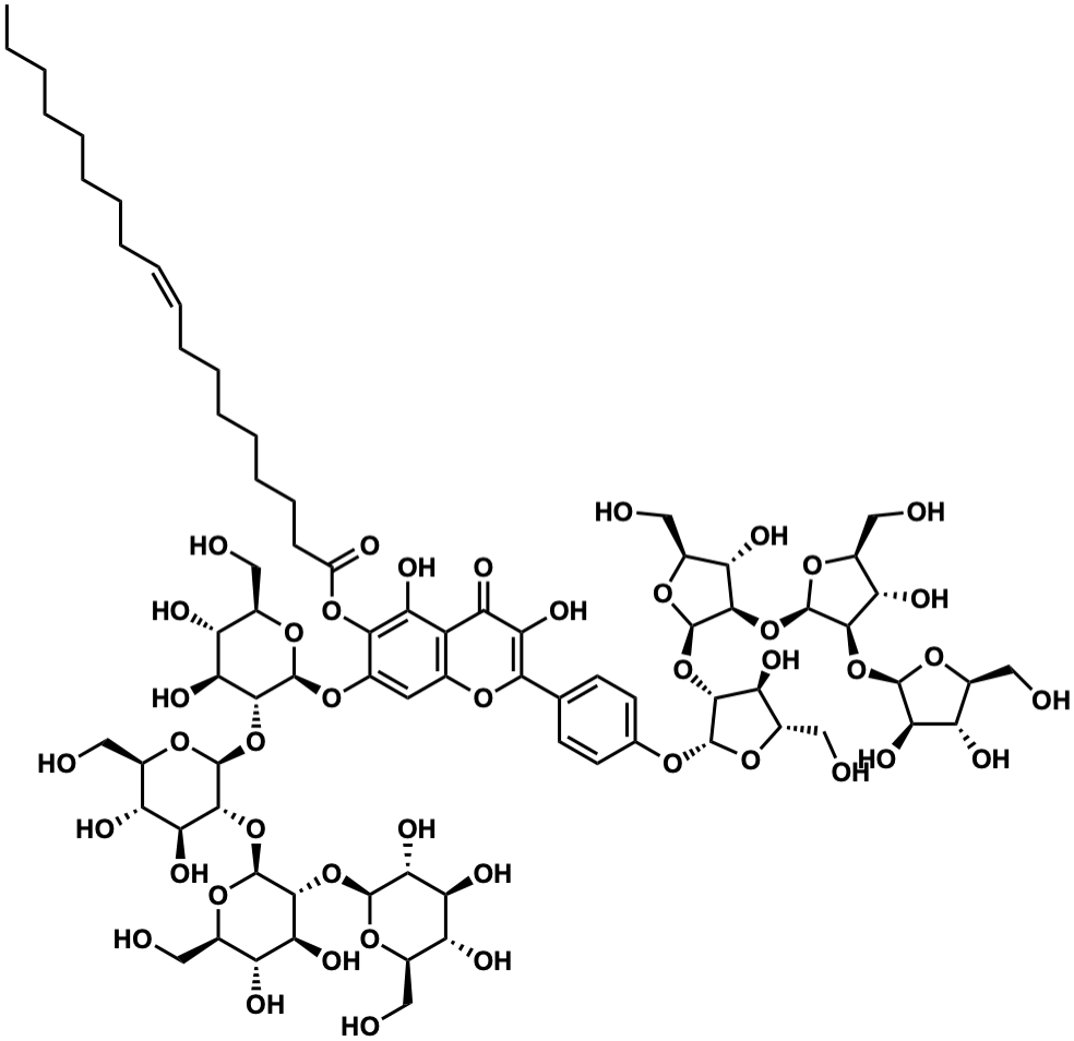 InChI=1S/C77H114O44/c1-2-3-4-5-6-7-8-9-10-11-12-13-14-15-16-17-43(86)115-63-34(106-73-67(56(98)46(88)36(24-79)109-73)120-77-69(58(100)48(90)38(26-81)111-77)121-76-68(57(99)47(89)37(25-80)110-76)117-71-61(103)55(97)45(87)35(23-78)107-71)22-33-44(54(63)96)53(95)59(101)62(105-33)31-18-20-32(21-19-31)104-72-64(50(92)40(28-83)112-72)118-75-66(52(94)42(30-85)114-75)119-74-65(51(93)41(29-84)113-74)116-70-60(102)49(91)39(27-82)108-70/h9-10,18-22,35-42,45-52,55-58,60-61,64-85,87-94,96-103H,2-8,11-17,23-30H2,1H3/b10-9-/t35-,36-,37-,38-,39+,40+,41+,42+,45-,46-,47-,48-,49+,50+,51+,52+,55+,56+,57+,58+,60-,61-,64-,65-,66-,67-,68-,69-,70-,71+,72+,73-,74-,75-,76+,77+/m1/s1 |