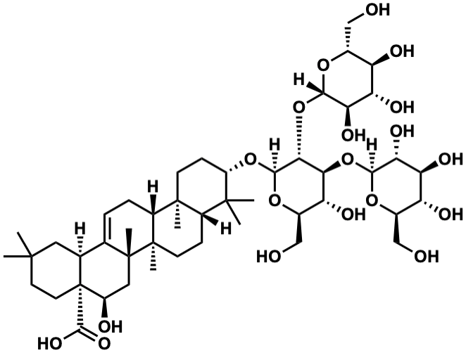 InChI=1S/C48H78O19/c1-43(2)14-15-48(42(60)61)22(16-43)21-8-9-27-45(5)12-11-29(44(3,4)26(45)10-13-46(27,6)47(21,7)17-28(48)52)65-41-38(67-40-36(59)34(57)31(54)24(19-50)63-40)37(32(55)25(20-51)64-41)66-39-35(58)33(56)30(53)23(18-49)62-39/h8,22-41,49-59H,9-20H2,1-7H3,(H,60,61)/t22-,23+,24+,25+,26-,27+,28+,29-,30+,31+,32+,33-,34-,35+,36+,37-,38+,39-,40-,41-,45-,46+,47+,48+/m0/s1 |