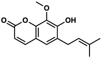 COc1c(O)c(CC=C(C)C)cc2ccc(=O)oc12 |