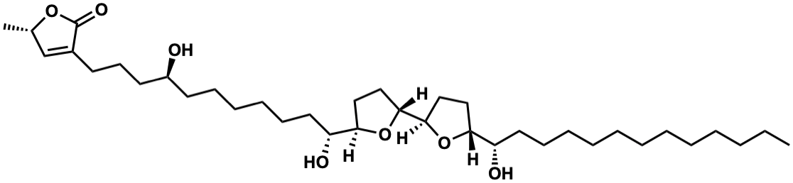 InChI=1S/C37H66O7/c1-3-4-5-6-7-8-9-10-11-15-21-31(39)33-23-25-35(43-33)36-26-24-34(44-36)32(40)22-16-13-12-14-19-30(38)20-17-18-29-27-28(2)42-37(29)41/h27-28,30-36,38-40H,3-26H2,1-2H3/t28-,30-,31-,32+,33+,34+,35+,36+/m0/s1 |