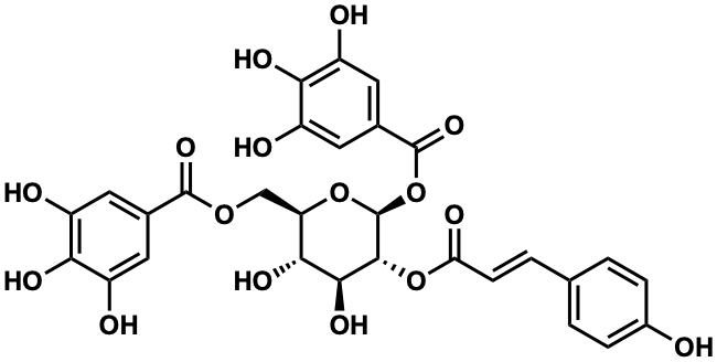 InChI=1S/C29H26O16/c30-15-4-1-12(2-5-15)3-6-21(35)44-26-25(39)24(38)20(11-42-27(40)13-7-16(31)22(36)17(32)8-13)43-29(26)45-28(41)14-9-18(33)23(37)19(34)10-14/h1-10,20,24-26,29-34,36-39H,11H2/b6-3+/t20-,24-,25+,26-,29+/m1/s1 |