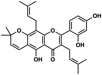 CC(C)=CCc1c(-c2ccc(O)cc2O)oc2c(CC=C(C)C)c3c(c(O)c2c1=O)C=CC(C)(C)O3 |