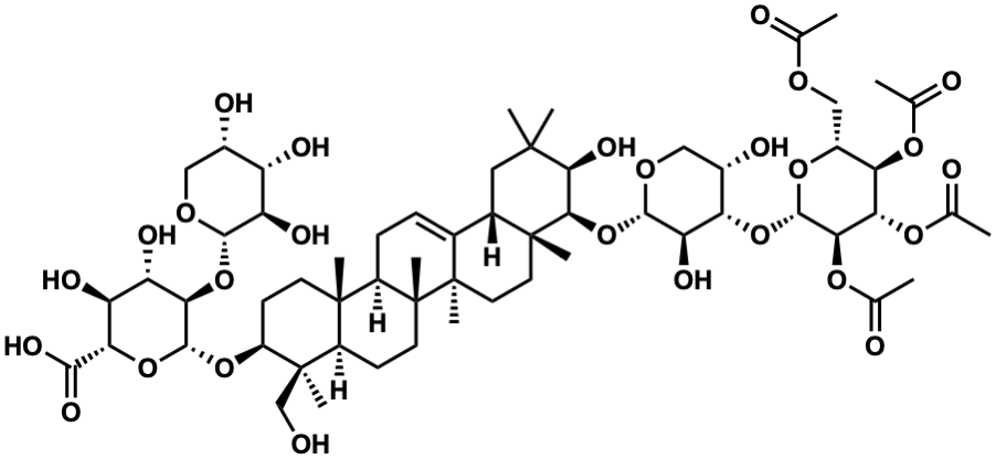 InChI=1S/C60H92O27/c1-25(62)76-23-33-43(79-26(2)63)46(80-27(3)64)47(81-28(4)65)54(82-33)84-42-32(67)22-78-52(41(42)72)87-49-48(73)55(5,6)20-30-29-12-13-35-57(8)16-15-36(58(9,24-61)34(57)14-17-60(35,11)59(29,10)19-18-56(30,49)7)83-53-45(39(70)38(69)44(85-53)50(74)75)86-51-40(71)37(68)31(66)21-77-51/h12,30-49,51-54,61,66-73H,13-24H2,1-11H3,(H,74,75)/t30-,31-,32-,33+,34+,35+,36-,37-,38-,39-,40+,41+,42-,43+,44-,45+,46-,47+,48-,49+,51-,52-,53+,54-,56+,57-,58+,59+,60+/m0/s1 |