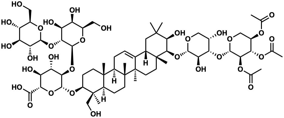 InChI=1S/C64H100O31/c1-25(68)85-33-23-84-56(50(87-27(3)70)46(33)86-26(2)69)91-45-30(71)22-83-54(44(45)79)95-52-51(80)59(4,5)19-29-28-11-12-35-61(7)15-14-36(62(8,24-67)34(61)13-16-64(35,10)63(28,9)18-17-60(29,52)6)90-58-49(42(77)41(76)47(92-58)53(81)82)94-57-48(40(75)38(73)32(21-66)89-57)93-55-43(78)39(74)37(72)31(20-65)88-55/h11,29-52,54-58,65-67,71-80H,12-24H2,1-10H3,(H,81,82)/t29-,30-,31+,32+,33+,34+,35+,36-,37+,38-,39-,40-,41-,42-,43+,44+,45-,46-,47-,48+,49+,50+,51-,52+,54-,55-,56-,57-,58+,60+,61-,62+,63+,64+/m0/s1 |