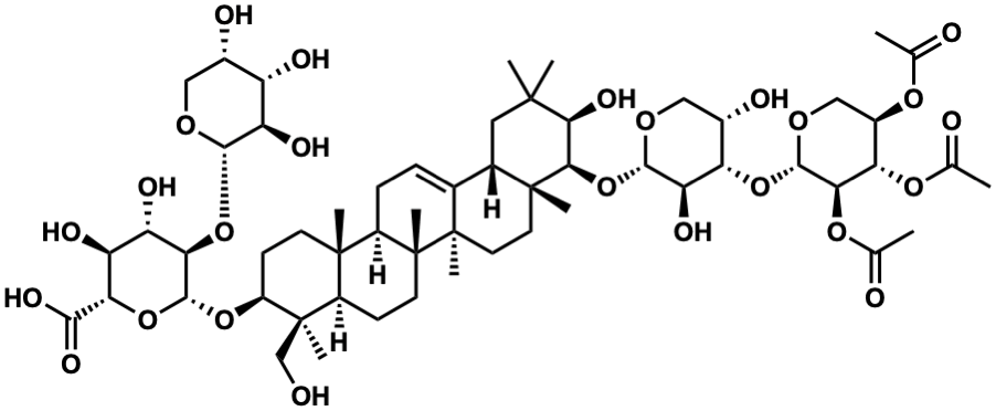 InChI=1S/C57H88O25/c1-24(59)75-31-22-74-50(44(77-26(3)61)41(31)76-25(2)60)79-40-30(63)21-73-49(39(40)68)82-46-45(69)52(4,5)19-28-27-11-12-33-54(7)15-14-34(55(8,23-58)32(54)13-16-57(33,10)56(27,9)18-17-53(28,46)6)78-51-43(37(66)36(65)42(80-51)47(70)71)81-48-38(67)35(64)29(62)20-72-48/h11,28-46,48-51,58,62-69H,12-23H2,1-10H3,(H,70,71)/t28-,29-,30-,31+,32+,33+,34-,35-,36-,37-,38+,39+,40-,41-,42-,43+,44+,45-,46+,48-,49-,50-,51+,53+,54-,55+,56+,57+/m0/s1 |