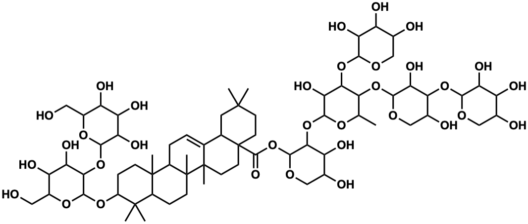 InChI=1S/C68H110O33/c1-26-50(96-57-48(85)51(32(74)25-90-57)97-55-45(82)38(75)29(71)22-88-55)52(98-56-46(83)39(76)30(72)23-89-56)49(86)59(92-26)99-53-40(77)31(73)24-91-60(53)101-62(87)68-17-15-63(2,3)19-28(68)27-9-10-36-65(6)13-12-37(64(4,5)35(65)11-14-67(36,8)66(27,7)16-18-68)95-61-54(44(81)42(79)34(21-70)94-61)100-58-47(84)43(80)41(78)33(20-69)93-58/h9,26,28-61,69-86H,10-25H2,1-8H3 |