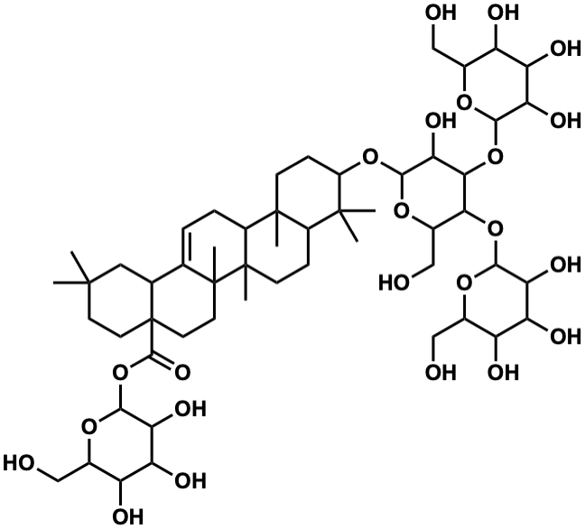 InChI=1S/C54H88O23/c1-49(2)14-16-54(48(69)77-46-40(67)37(64)34(61)27(21-57)72-46)17-15-52(6)23(24(54)18-49)8-9-30-51(5)12-11-31(50(3,4)29(51)10-13-53(30,52)7)74-47-41(68)43(76-45-39(66)36(63)33(60)26(20-56)71-45)42(28(22-58)73-47)75-44-38(65)35(62)32(59)25(19-55)70-44/h8,24-47,55-68H,9-22H2,1-7H3 |